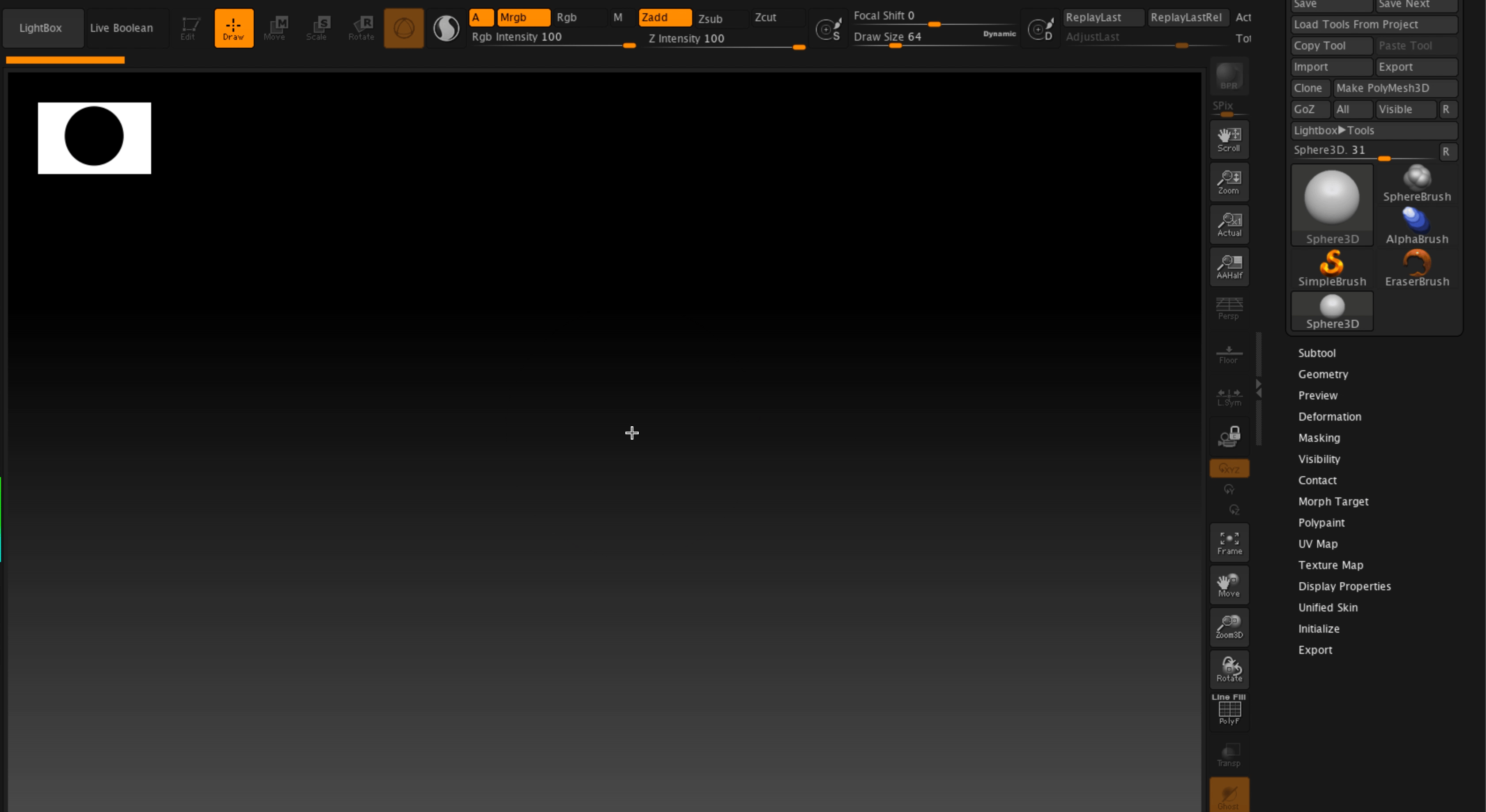 지브러쉬는 커서를 중심으로 오브젝트가 커지기 때문에, 오브젝트 생성 시에는 커서를 중앙에 놓고 드래그해야 함.