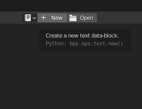 그 다음 Text Editor 패널을 열고, New를 눌러 새로운 텍스트 데이터 블록을 생성한 뒤,