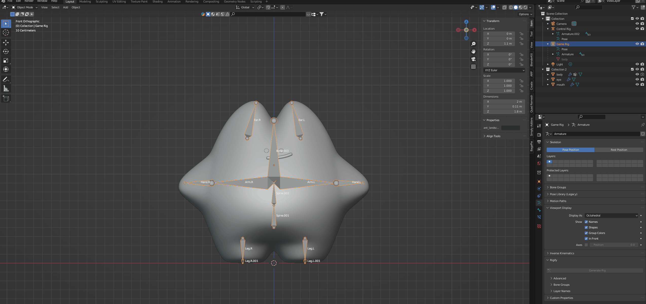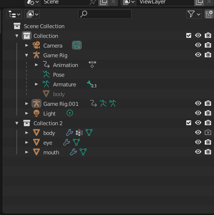 Hierarchy 창에서 Armature 오브젝트를 더블클릭해 이름을 Game Rig로 바꿔주고, Shift+D(복제 단축키)를 눌러 복제한다.