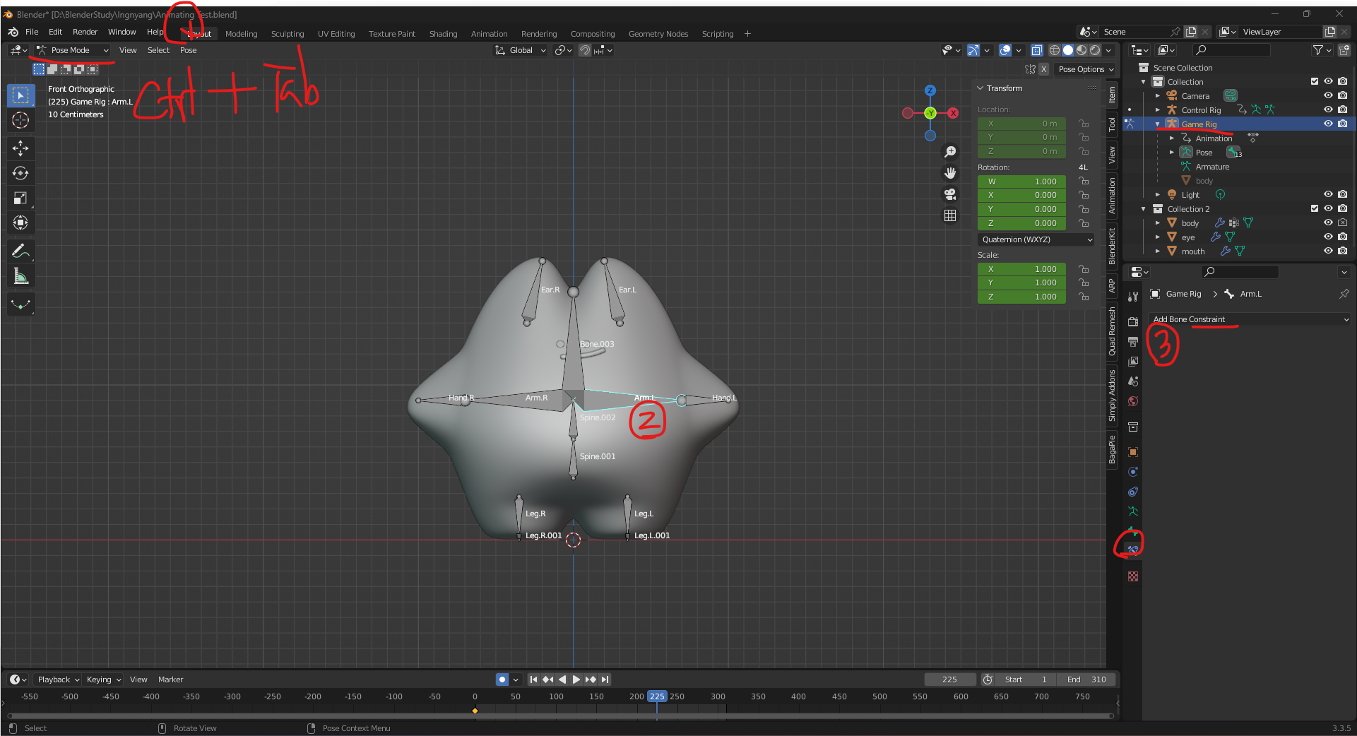 Constraint 추가하기 : 손으로 Bone 변경