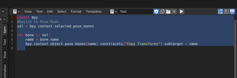 - 이 스크립트를 실행하기 전에 Pose Mode에 있어야 한다