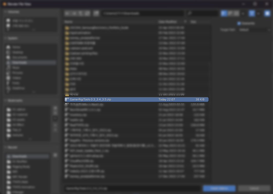 이제 블렌더를 켜고, Edit>Preference>Addon에서 아까 받은 파일을 Zip파일 형태로 선택해주면 된다.