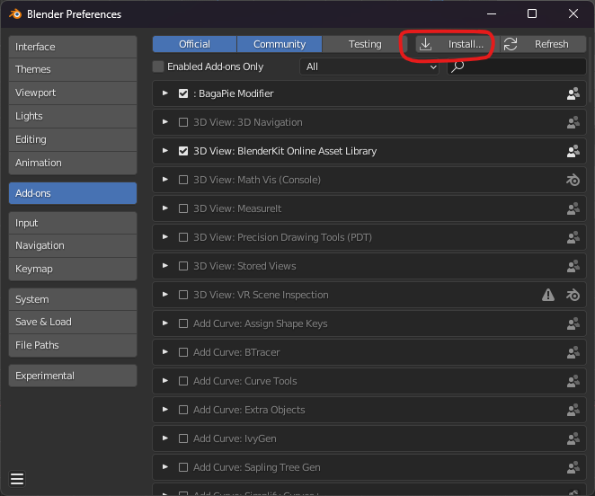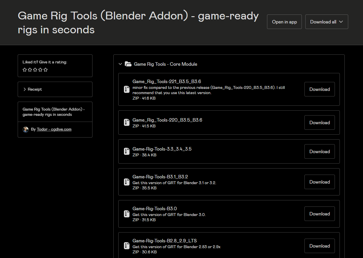 여기서 Core Module 부분을 펼쳐서 자신의 블렌더 버전에 맞는 애드온을 받아주면 된다.