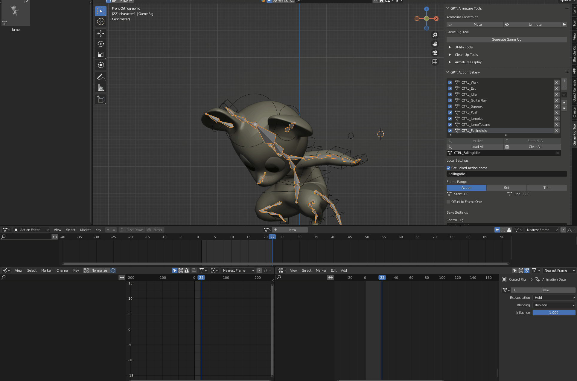 원하는 대로 설정을 마친 후, Bake Action Bakery버튼을 누르면 Game Rig에 애니메이션을 베이킹 할 수 있다.