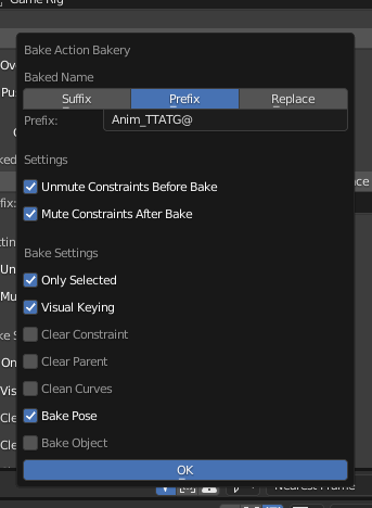 - Prefix(접두사) : 베이크된 애니메이션 맨앞에 공통 접두사를 붙인다.