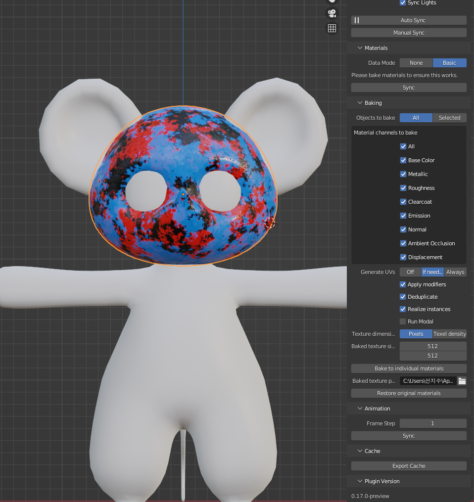 주의사항은 아니고, Sync Material을 누르면 따로 베이킹해뒀던 재질을 Unity에 연동시킬 수 있다.