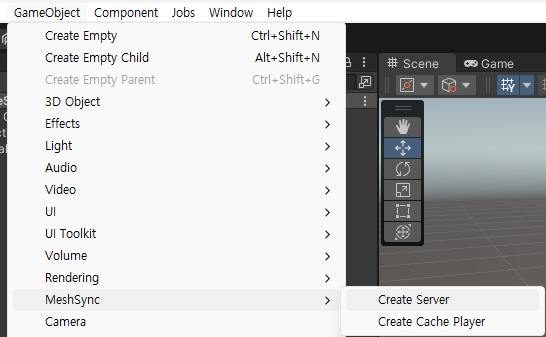 Gameobject > MeshSync > Create Server 선택